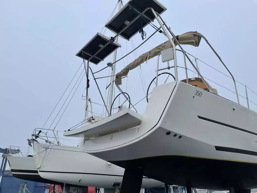 Le bateau a été rapatrié à La Rochelle par transporteur. A son arrivée, le chantier CAT & GO a pris en charge la remise en place des éléments démontés pour le transport.