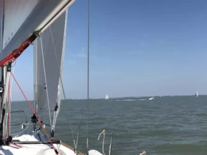 Une journée de voile dans les Pertuis. Pour un 7 avril, grand soleil, mer calme et un vent de 10 nœuds au près. Sortie du port de la Rochelle, toutes voiles dehors, direction le Pertuis Breton pour débuter cette magnifique balade en mer à la voile.