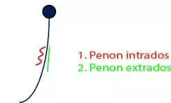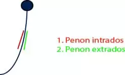 Deux ou trois séries de penons sont généralement disposées. Ils se différencient entre eux à l’aide de deux couleurs et de leur position décalée. Généralement le penon situé à l’intérieur de la voile est rouge, on dit que c’est le penon au vent (intrados). A l’inverse, le penon situé à l’extérieur de la voile, autrement dit le penon sous le vent (extrados) est de couleur verte.